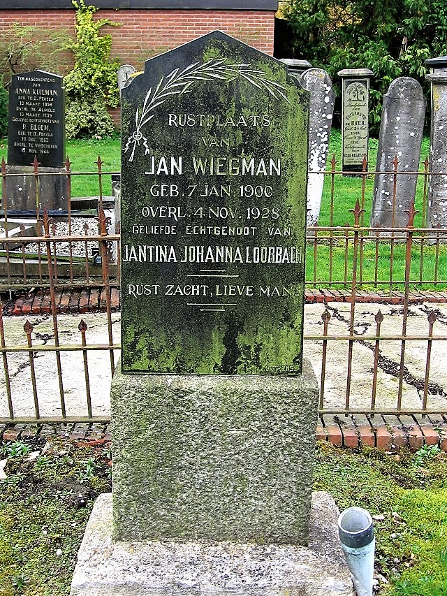 | Op het graf, met nummer M.G. 283, staat vermeld Hillegonda van der Ems. In het archief van Alkmaar heeft de overlijdensakte nummer 16174. |