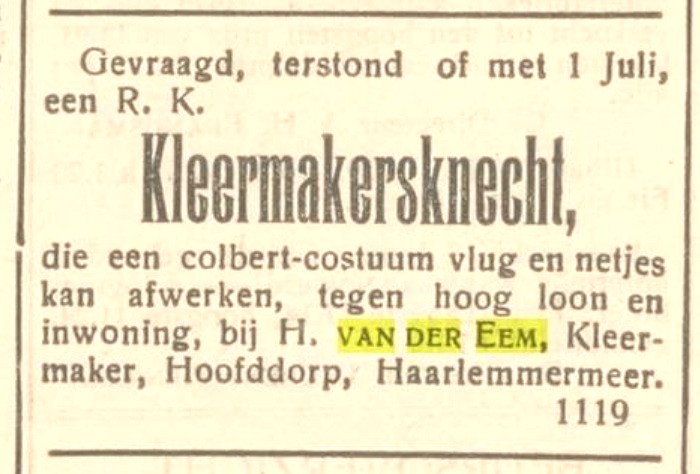 Vader Dirk Jansen heet 'van der Eem', doch wordt ook vermeld bij de geboorte van enkele kinderen als Dirk Jansen Vreem. Er bestaat de nodige onduidelijkheid van de geschreven archieven vertaald naar de digitale archieven rond Jan Dirks van der Eem. Enerzijds wordt zijn vader vermeld als Dirk Jansen van der Eem, geboren kort voor 23-12-1655 te Maurik. Anderzijds wordt zijn vader ook vermeld als Dirk Jan Fransen van der Eem, geboren 07-09-1656 geboren te Hoofddorp. Beiden zouden zijn getrouwd met Neeltje Alberts Loos! Nader onderzoek volgt (waarbij de geboorteplaatsen boekdelen spreken?) Bij Anneken Vreem roept ...01-1691 in relatie tot haar broer Jan Dirks van der Eem 07-09-1690 vragen op. Doch er moet nadrukkelijk gemeld dat het voor Anneken Vreem als schippersdochter haar doopakte betreft. |